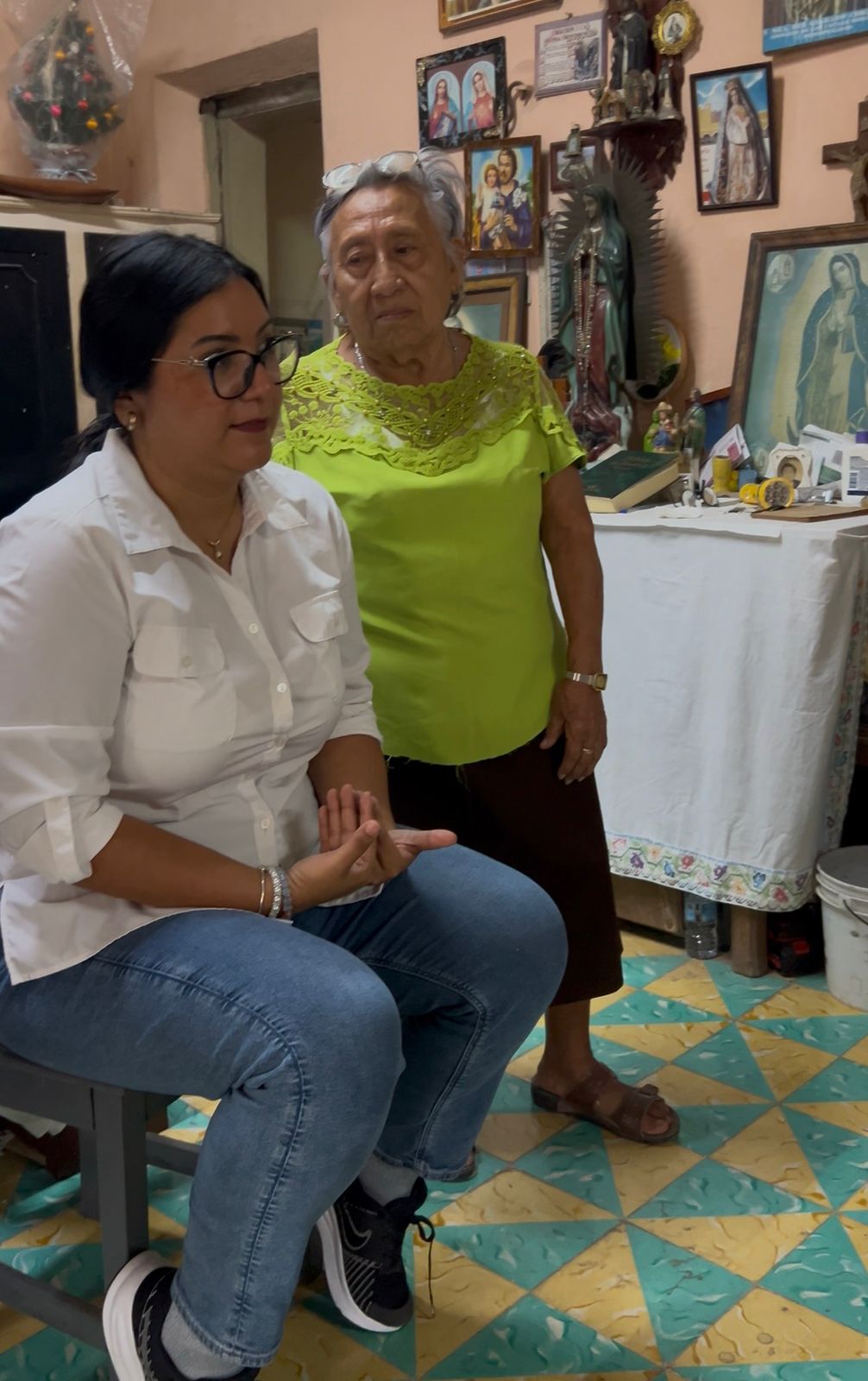 La regidora Georgina Piña Acosta visitó a las hermanas Ena y Bartola Xeque Pech para brindar acompañamiento tras el derrumbe del cielo raso en su hogar. Debido a que las afectadas viven solas y carecen de recursos para una reparación mayor, la regidora fungió como vínculo con las autoridades estatales.