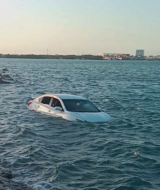Un vehículo salió del camino durante la tarde de este jueves en la carretera Progreso-Chelem y terminó dentro de la ciénega, a la altura del kilómetro 4.
